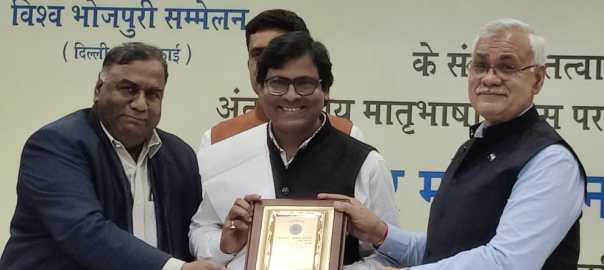 आयोजन में भारतीय प्रशासनिक सेवा के वरिष्ठ अधिकारी श्री दुर्गा शंकर मिश्र, ले. जनरल श्रीकृष्ण सिंह, वरिष्ठ पत्रकार श्री मनोज मिश्र, लेखक श्री गौतम चौबे, संपादक श्री मनोज भावुक को भोजपुरी रत्न सम्मान से सम्मानित किया गया।