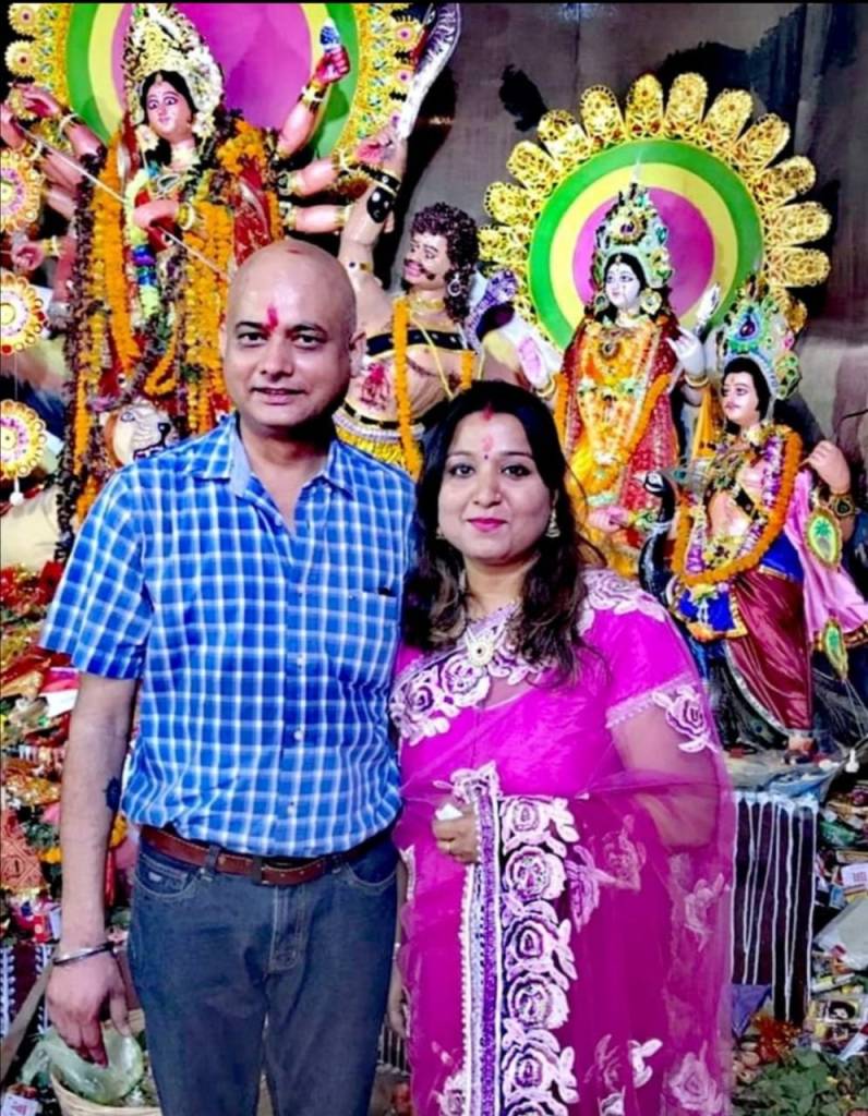 Aashish and Divya celebrating Durga Puja in Dhanbad in 2018.