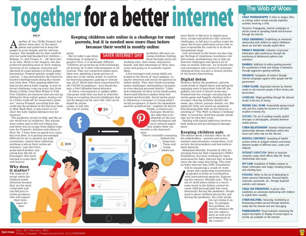 February 8, 2022The Free Press Journalchild pornography, cyber bullying, cyber scamps, cyber violence, gadget addiction, internet addiction, Internet Challenges, online challenge, online gambling, online gaming, privacy invasion, Safer Internet DayShillpi A Singh