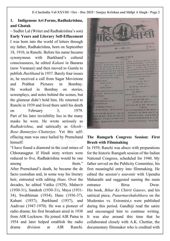 2026 writing begins with this deeply personal and archival piece for Fipresci-India, where Sanjay Krishna and I revisited my family history, which led us to an overlooked but vital figure in Indian cinema: #Radhakrishna—litterateur, editor, screenwriter, linguist, and what I call Father of the Indian New Wave Ritwik Ghatak’s “invisible write hand” in Jharkhand.