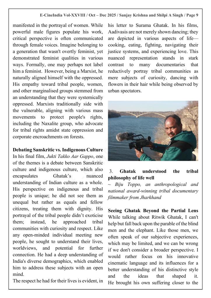 ~ Biju Toppo, an anthropological and national award-winning tribal documentary filmmaker from Jharkhand, on Ghatak, and how he understood the tribal philosophy of life well