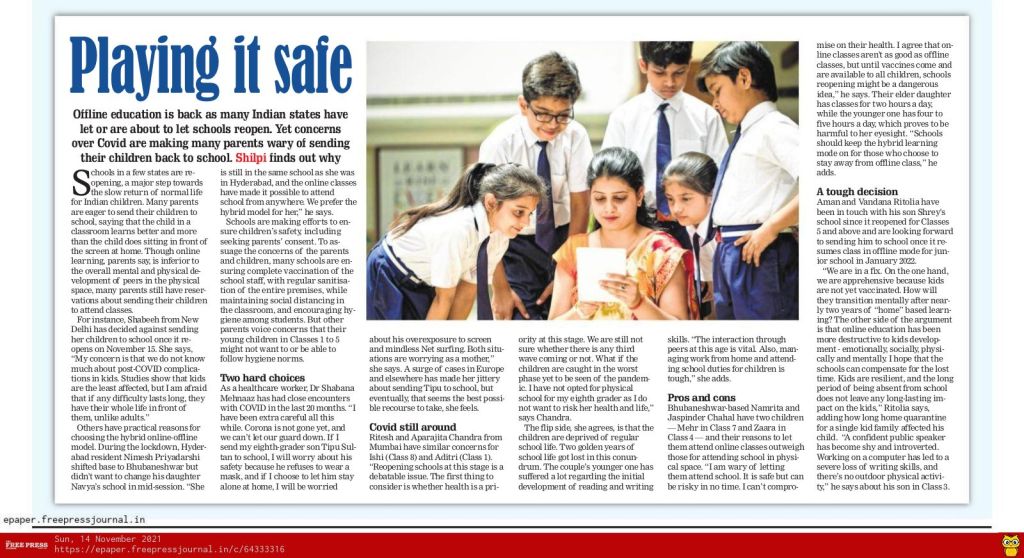 Before opening their doors and resuming teaching within the four walls of the learning space, the schools had taken ample precautions, including seeking parents’ consent. To assuage the concerns of the parents and children, the schools had ensured complete vaccination of the school staff, with regular sanitization of the entire premises, while maintaining social distancing in the classroom, encouraging hygiene among students, etc. A quick roundup of those sending their children to school versus those who don’t want to, and why.